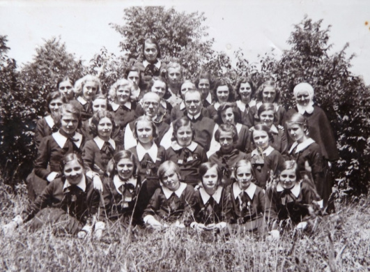 | + | Fájl:Zirci polgárista lányok. Középen dr. Naszályi Emil és Kukoda Miklós plébános, kb. 1939. Masszi Baba, Punk Magdi, Rezeli Tutti felismerhető.jpg|Zirci polgárista lányok. Középen dr. Naszályi Emil és Kukoda Miklós plébános, kb. 1939. Masszi Baba, Punk Magdi, Rezeli Tutti felismerhető | ||